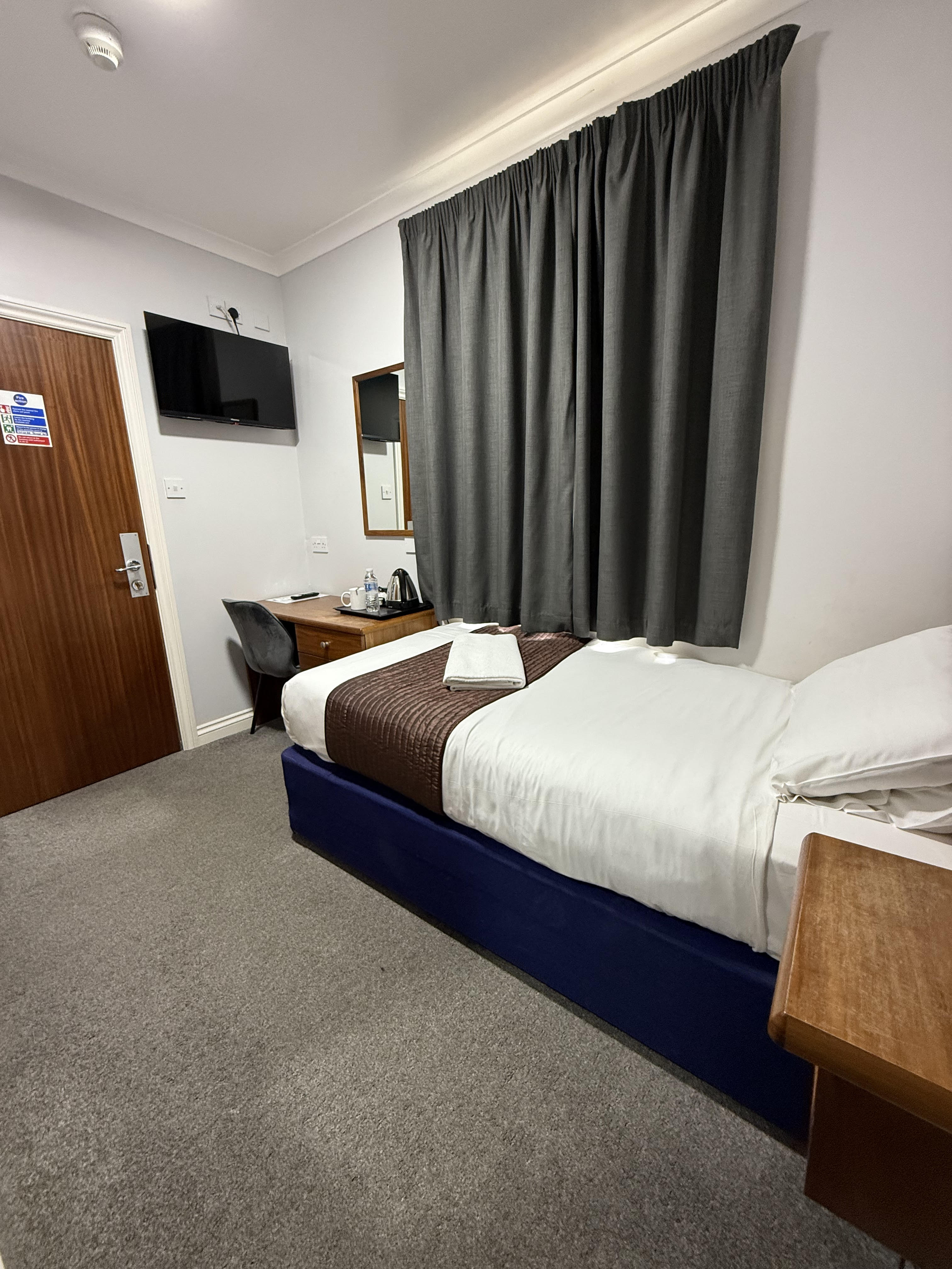 In addition to the facilities listed below, the room features one small double bed and a Smart TV with 33 free digital channels. Room facilities: Desk, Ironing Facilities, Seating Area, Heating, Carpeted, Shower, Bath, Hairdr ...